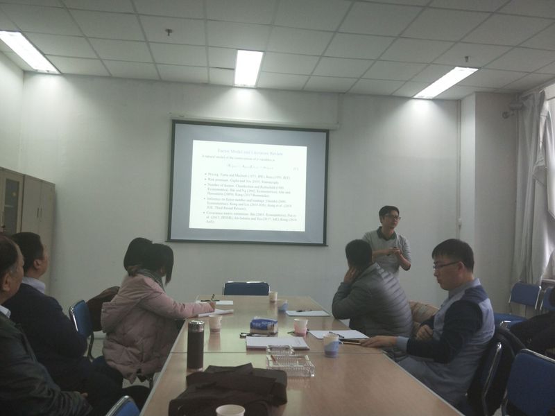 报告会中孔新兵老师结合他多年的学习,教学和研究经验,由因子模型引出主题。首先,给出了建立模型的合理依据和创新点,并对过程中的细节进行了讲解。接下来,对高频数据的概念进行介绍,“频率越抽越高”用来形容“高频”。又对高频数据建立时间连续的因子模型。过程中,孔老师发现数据的不平稳不适合用全局PCA,而选用了局部PCA,进行估值,维数越高,则数据越准。又对近期未解决的四个问题进行了一一说明,并表示要继续研究。最后,欧冠官方网站的老师和同学们与孔老师进行了互动,孔新兵老师对同学们提出的问题进行了详细的解答,并激励同学们努力学习,坚持脚踏实地的学习理论知识,为数学与统计学的发展不懈努力。