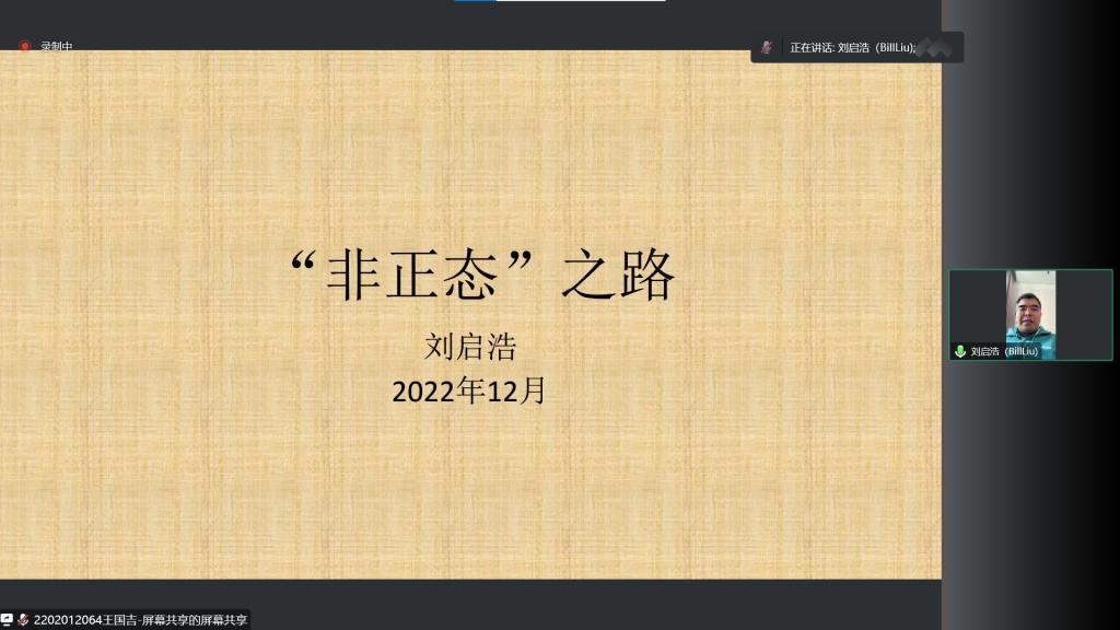 (通讯员:关迪)为了扩展学生的专业思维,提升专业知识的理论学习水平,2022年12月30日下午13:30,由科研处和欧冠官方网站主办的报告——“非正态之路”在腾讯会议线上举行,特别邀请刘启浩博士作为主讲人,基于刘博士本人的研究以及工作经历,为欧冠官网师生进行讲解,我院共有160多名师生前来参会讨论与学习。我院欧冠官方网站院长王纯杰、副院长李纯净等均参与会议讨论,会议院长王纯杰主持。