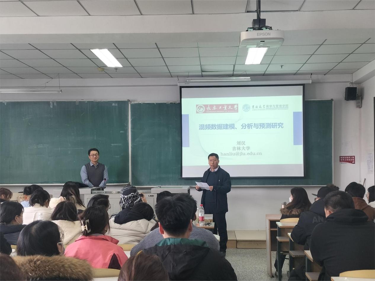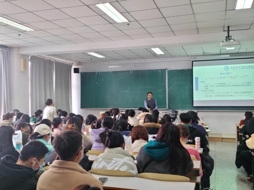 报告会结束后,大家针对混频数据建模产生了浓厚的兴趣,老师及同学向刘汉教授踊跃提问交流,其中韩教授针对同学提出的关于MIDAS模型的问题做出耐心解答,拓展了老师和同学们的学术视野,激发了同学们的学习热情,使老师和同学们对混频数据建模等有了更深的理解,与会师生都表示受益匪浅。