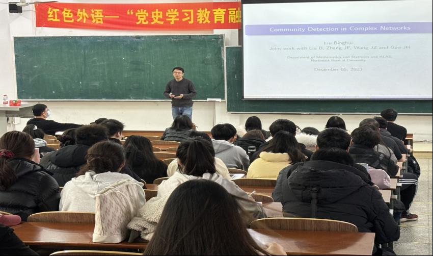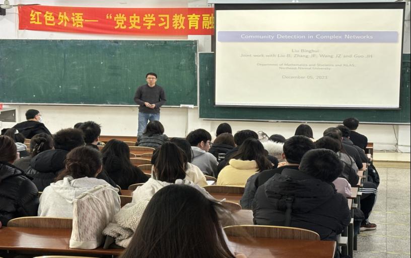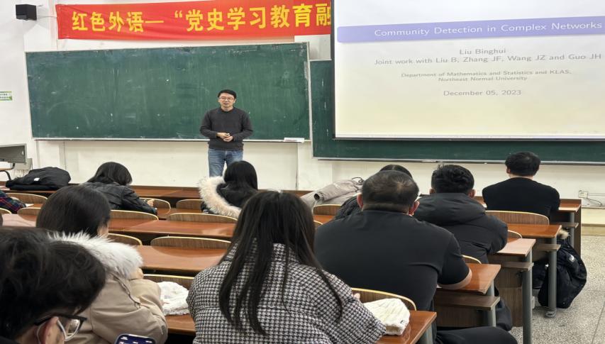 在报告中,刘教授以“复杂网络中的社区检测”为主题,阐述了随机块模型及其变体已经成为描述社区结构的最流行的统计模型,是许多复杂网络构建的基础,随后基于复杂网络的结构性,刘教授提出了“行与列解耦”的策略,通过这个策略,能够实现计算效率和准确的社区发现。在报告过程中,刘教授用通俗易懂的语言、条理清晰的讲解方式让同学们对复杂网络有了更准确的认识,还从不同的角度,分享了自己的研究经验和学习方法,为我院师生提供了宝贵的参考和借鉴。