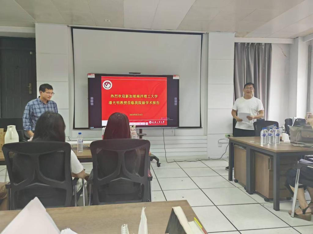 (通讯员:关迪)2024年8月5日上午10:00,新加坡南洋理工大学潘光明教授莅临我院做学术报告,在南湖校区老图书馆四楼左侧研究生5-1学习室进行,报告由欧冠官方网站副院长杨凯副教授主持,学院部分老师及研究生参加了本次学术报告会。
