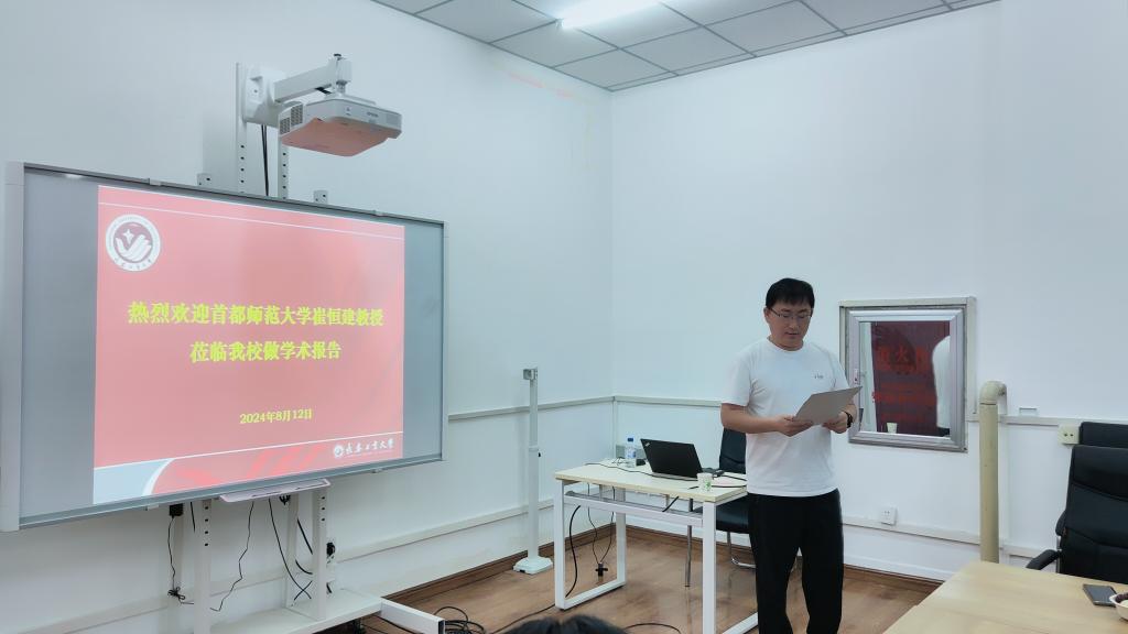 (通讯员:关迪)2024年8月12日上午9:00,首都师范大学崔恒建教授莅临我院做学术报告,报告在南湖校区老图四楼会议室进行学术报告进行。欧冠官方网站副院长杨凯副教授主持会议,学院部分老师及研究生参加了本次学术报告会。