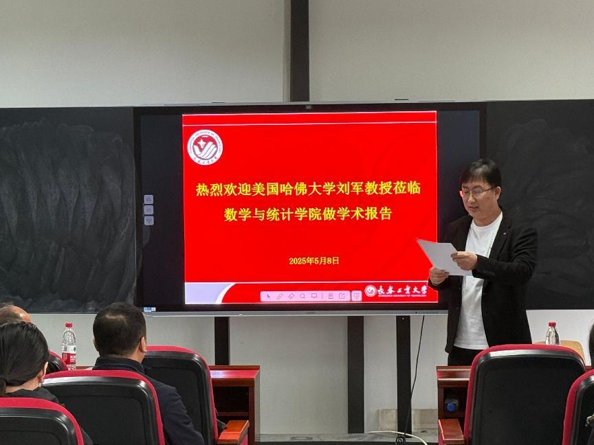 (通讯员:刘文姝)2025年5月8日上午9:00,美国哈佛大学刘军教授莅临我院做学术报告。本次报告由欧冠官方网站承办,在南湖校区老图书馆四楼会议室进行,会议由数学与统计学院副院长杨凯副教授主持,学院部分老师及研究生参加了本次学术报告会。