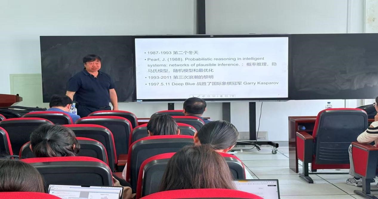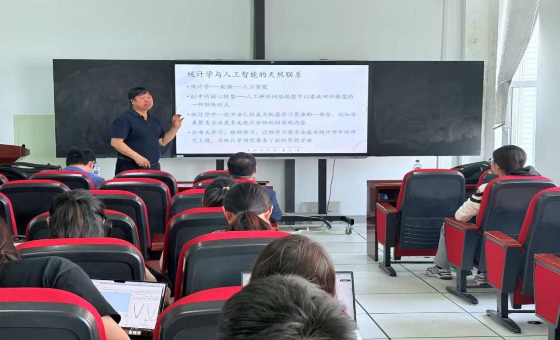 房祥忠教授首先回顾了人工智能的四次发展浪潮。从 1956 年达特茅斯会议开启 AI 元年,到如今自动化程度不断攀升的第四次浪潮,AI 的每一次突破都与统计学紧密相连。他指出,人工智能的核心模型 —— 人工神经网络,本质上可视为回归模型的特殊形态,而分类、聚类等经典统计方法早已融入机器学习的血脉。当下,分布式学习、联邦学习等新兴技术更成为统计学研究的前沿阵地,推动着学科的交叉融合与创新发展。