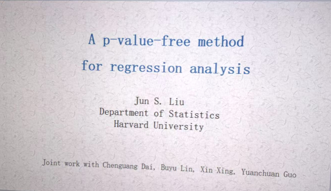 报告伊始,刘军教授从现代统计假设检验的视角切入,对p值问题的背景,渊源和优缺点进行了深刻的阐述,进一步讨论了多重检验等场景下,p值自由方法的好处,该方法十分具有启发性,引发了老师学生的极大关注。