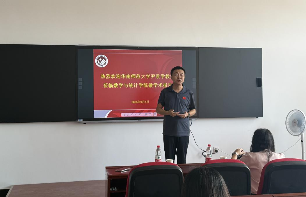 (通讯员:孙欣)2025年9月5日(星期五)上午9:30,我院特邀华南师范大学数学科学学院教授、博士导师尹景学老师在北湖校区教学科研楼新楼216室做学术报告,报告由学院副院长刘铭教授主持,本院研究生和部分老师参加了本次学术报告会。