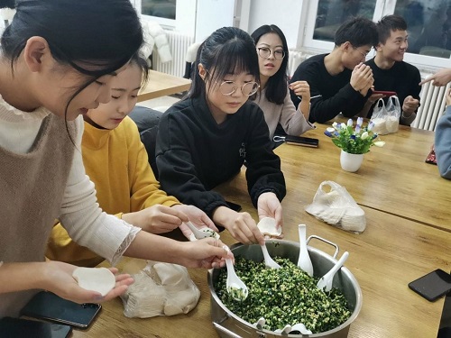 此活动得到了学校食堂的大力支持及餐饮工作人员们热心帮助。联欢第一项活动就是包饺子,同学们围坐在桌前,分工合作,包出各具特色的饺子。活动现场充满欢声笑语,气氛和谐融洽。几名学生被面粉摸花了脸,引得同学们捧腹大笑,形态各异的饺子更体现出了天南地北的同学风俗习惯。活动现场洋溢着青春的活力和团结合作的和谐氛围。期间郑老师也参与到包饺子的活动中,并为每桌同学包了饺子,以示送上最亲切的关怀和祝福。在同学们的团结协作、不懈努力之下,一碗碗热气腾腾的饺子在同学们的期待中端上了餐桌,同学们吃着香喷喷的饺子,李星晰等人还为同学们唱歌助兴,将活动现场热烈的氛围推向高潮。感受着欧冠官方网站大家庭的和谐温暖。
