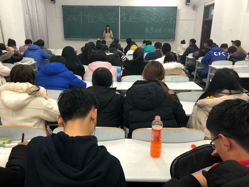 欧冠官方网站团委讯(通讯员:姚佳红 高帅帅)为了激励18级同学向典型学习,以身边的优秀学生为榜样,端正学习态度,明确未来目标,2018年11月15日晚,欧冠官方网站在教学楼309教室举办了双十佳大学生经验交流会。校第十九届十佳自立自强大学生胡宇婷为我院全体18级同学送上一场生动而励志的精彩报告。