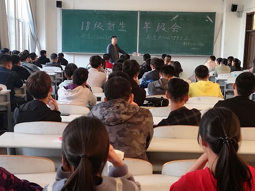 (欧冠官方网站团委讯 通讯员:卢继迎 张驰)为使新生们更好的适应大学生活,调整好心态,迈入大学校园后引领他们如何走好第一步,系好人生中第一粒扣子。2018年9月8日17点30分,新生辅导员郑岩老师在教学图书楼111教室为全体报到的2018级新生们召开了年级大会。