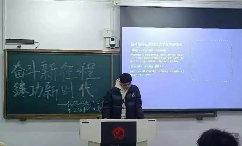 比赛时选手们镇定自若,讲述PPT,表达对主题的看法,展现出数统学子镇定、大方、自信的姿态。