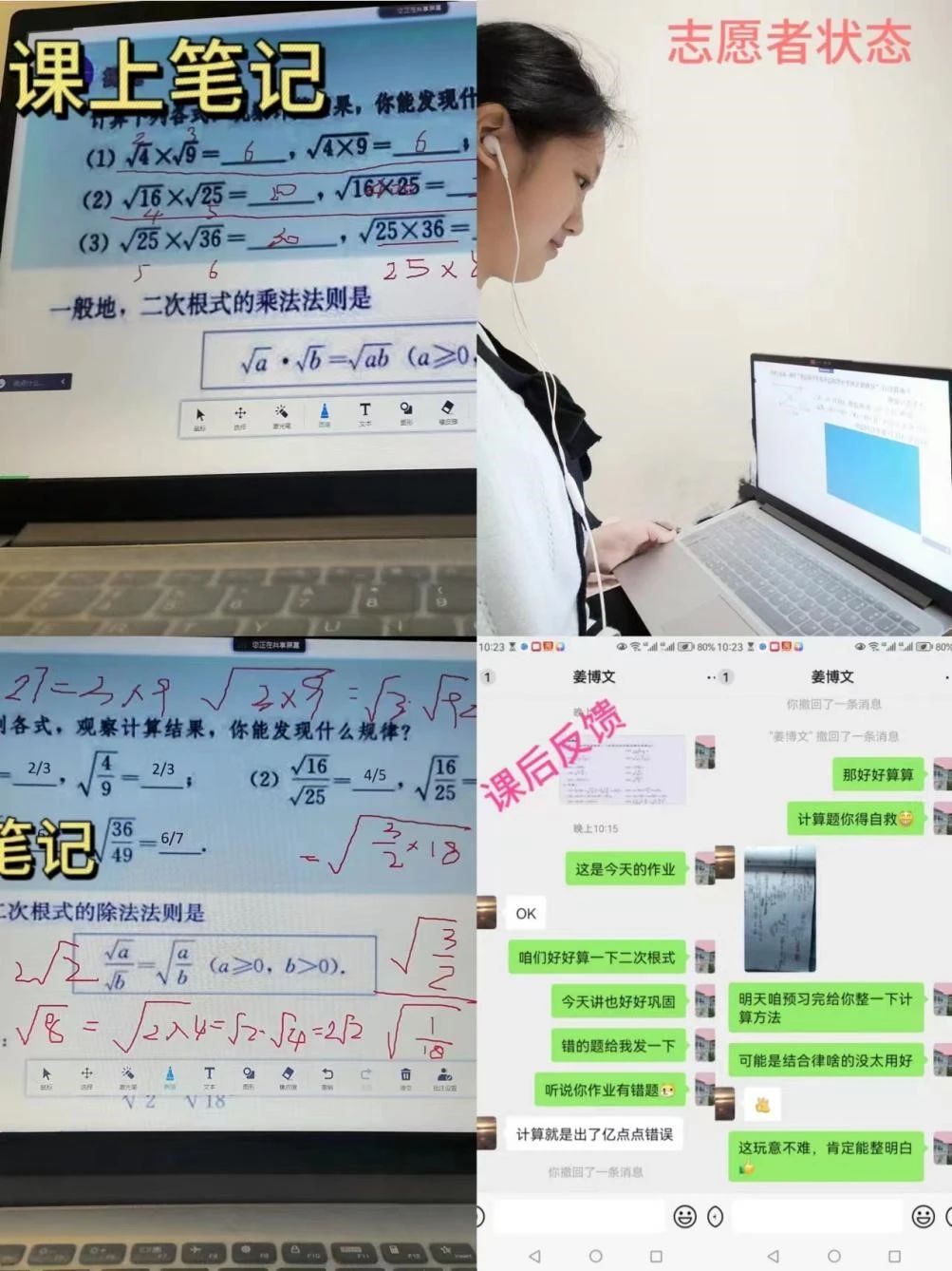 自活动开展以来,我院一批政治觉悟高、业务素质好的优秀青年积极主动报名参加,并在第一时间完成结对子。“学伴+”志愿者们针对服务对象的年级、学科、主要学业帮助诉求等问题,组建“一对一”、“多对一”的学业帮帮团,借助线上微信视频通话、QQ屏幕共享、腾讯会议等平台,通过线上或线下辅导等多种方式,及时解答服务对象的学业问题,用热情与真诚践行志愿精神,得到了学生家长和学生们的一致认可和好评。本期让我们一起了解欧冠官方网站“学伴+”志愿者们的伴学故事和心声。