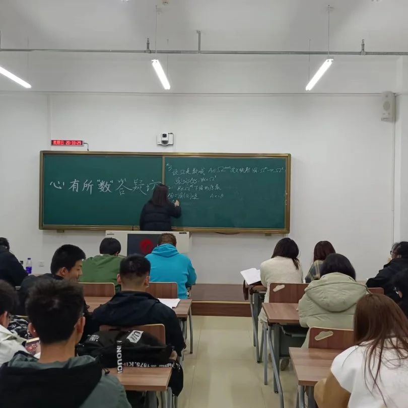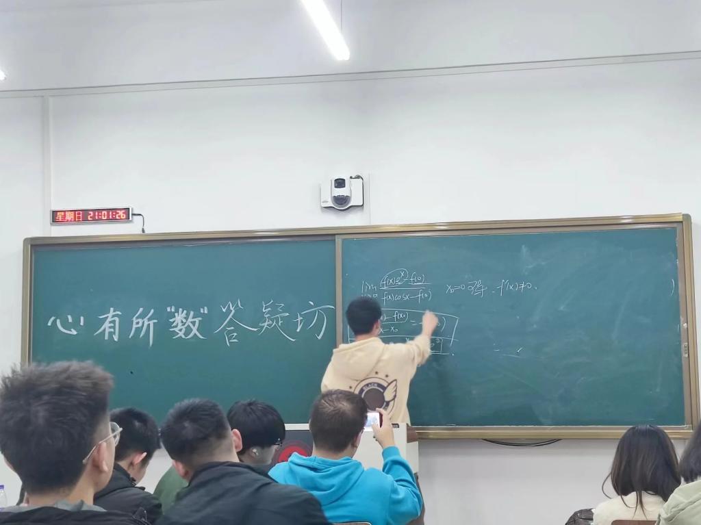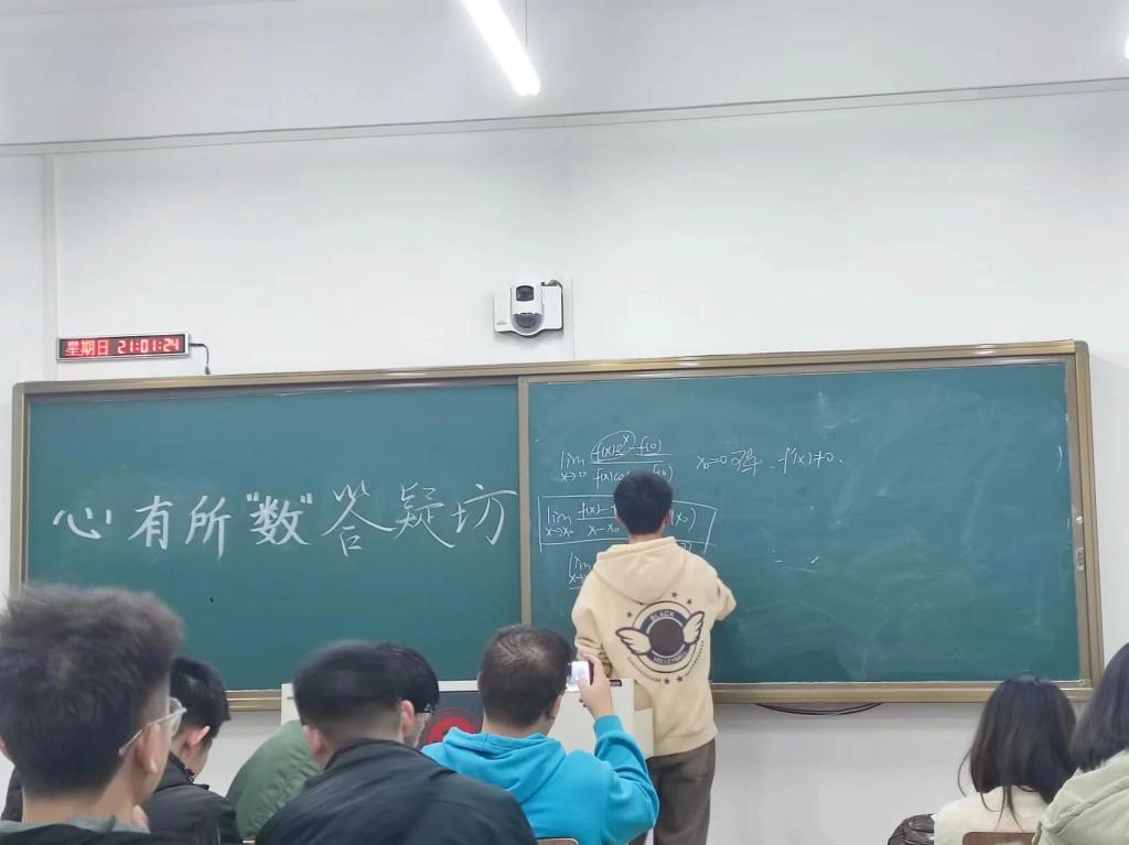 欧冠官方网站团委讯(通讯员:邝玲玉 许思蒙)为了让同学们对所学知识加深了解,更有效准确的攻破难题,促进交流学习,欧冠官方网站于3月17日晚8:00-9:00在主楼219教室首次举行心有所“数”答题坊活动。此活动由2021级艾文博、姜梓祺、孟烨林、张志英、徐睿五位同学就所学知识为低年级学生答疑解惑。
