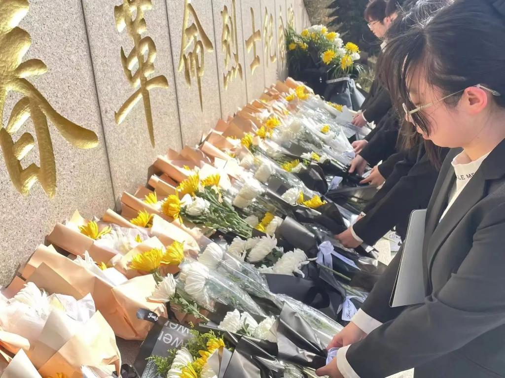 将鲜花轻轻放下,表达对烈士崇高的敬意。