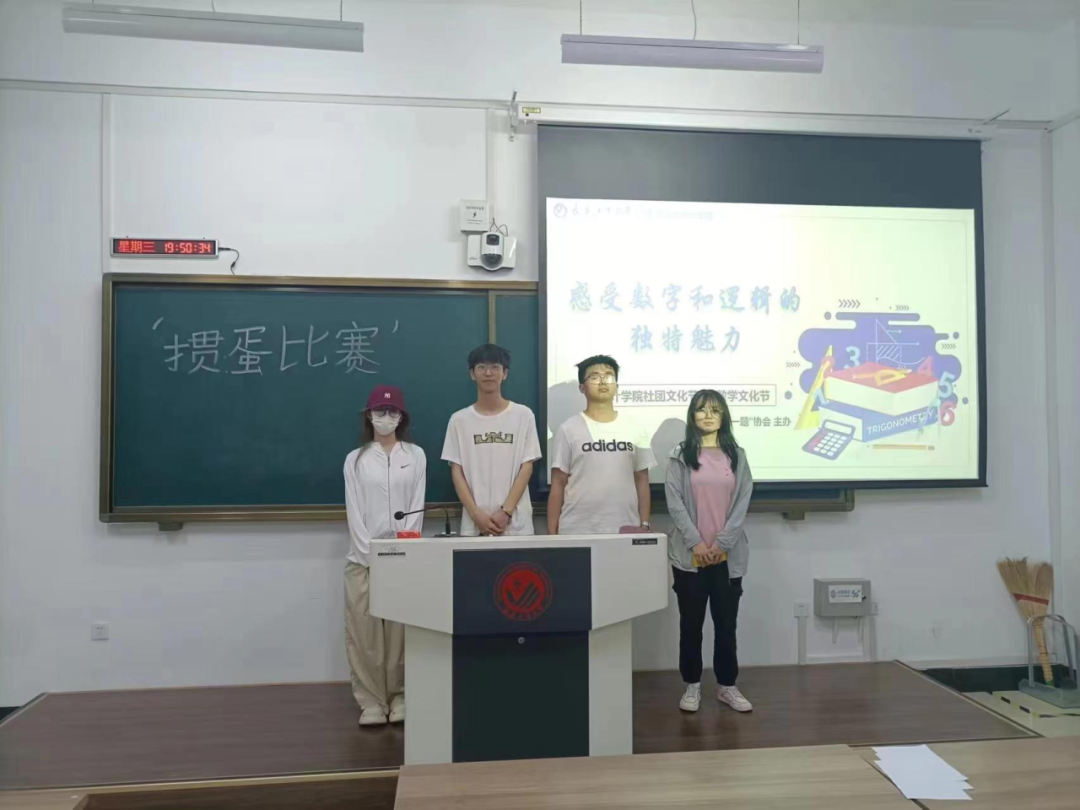 本次活动内容为:参加活动的同学们两两组队成一组,每两组进行三场掼蛋比赛,对门的为已方,构成一组,与另一组对抗。采用淘汰制的比赛方式得分高的组晋级,如场分相同,则比较其累计标准分,高者列前;如两对选手场分、标准分均相同,则先比较两对选手之间相遇时的胜负关系,胜者在前;直至赛出冠军。最终按照成绩排名取一、二、三等奖并颁发奖状。