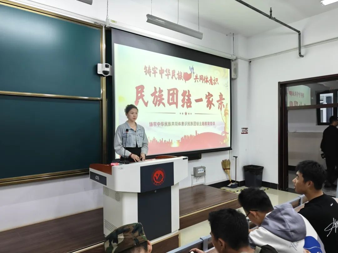 欧冠官方网站团委讯(通讯员:唐梦然 韦潘)为培养新生的家国情怀与民族大义,在多元文化的交融中感悟中华民族团结一心的磅礴伟力,欧冠官方网站于2024年9月16日晚在北湖东区主楼215、232教室开展了“民族团结一家亲”主题会议,本次会议由范馨元主讲,全体大一新生参会。