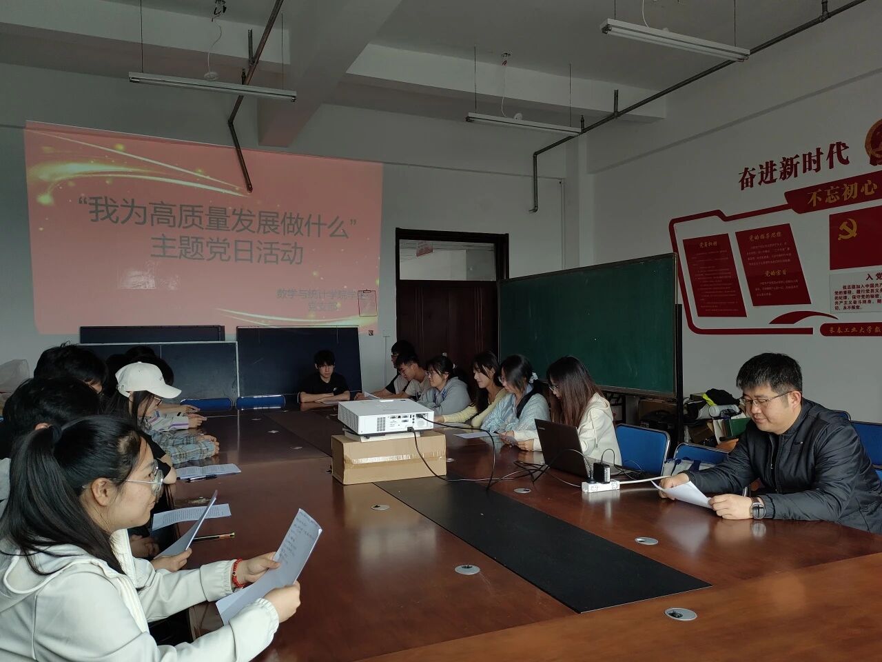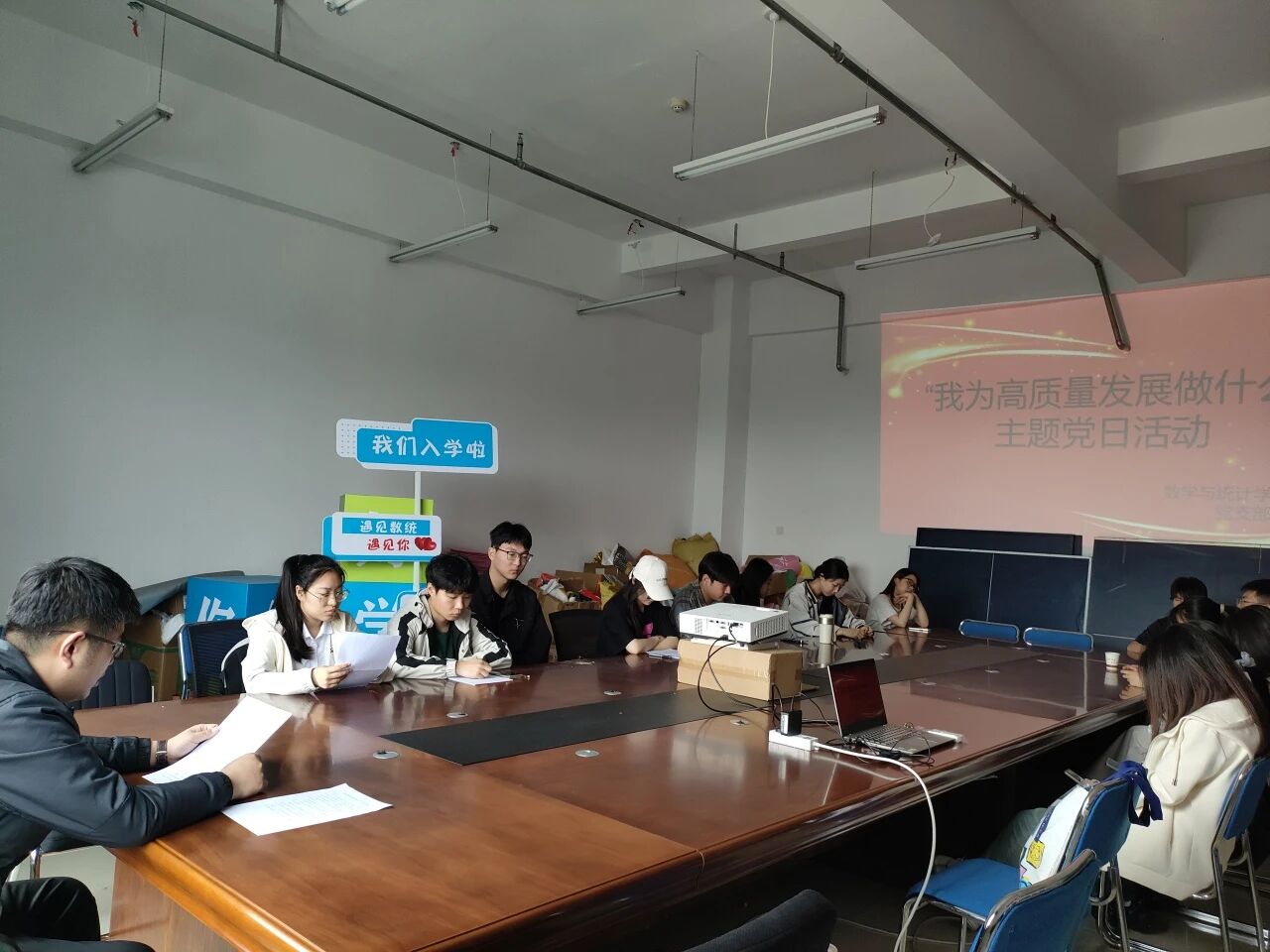 首先,由学院学生党支部书记白海洋老师以“我为高质量发展做什么”为主题,强调全体党员要持续深入学习贯彻习近平新时代中国特色社会主义思想,深刻把握高质量发展的核心内涵和战略意义,详细阐述了高质量发展的具体体现。并结合学院、学生具体实际现状,向同学们阐释了青年党员在新时代背景下如何以实际行动践行党的宗旨,为学院高质量发展做出贡献。