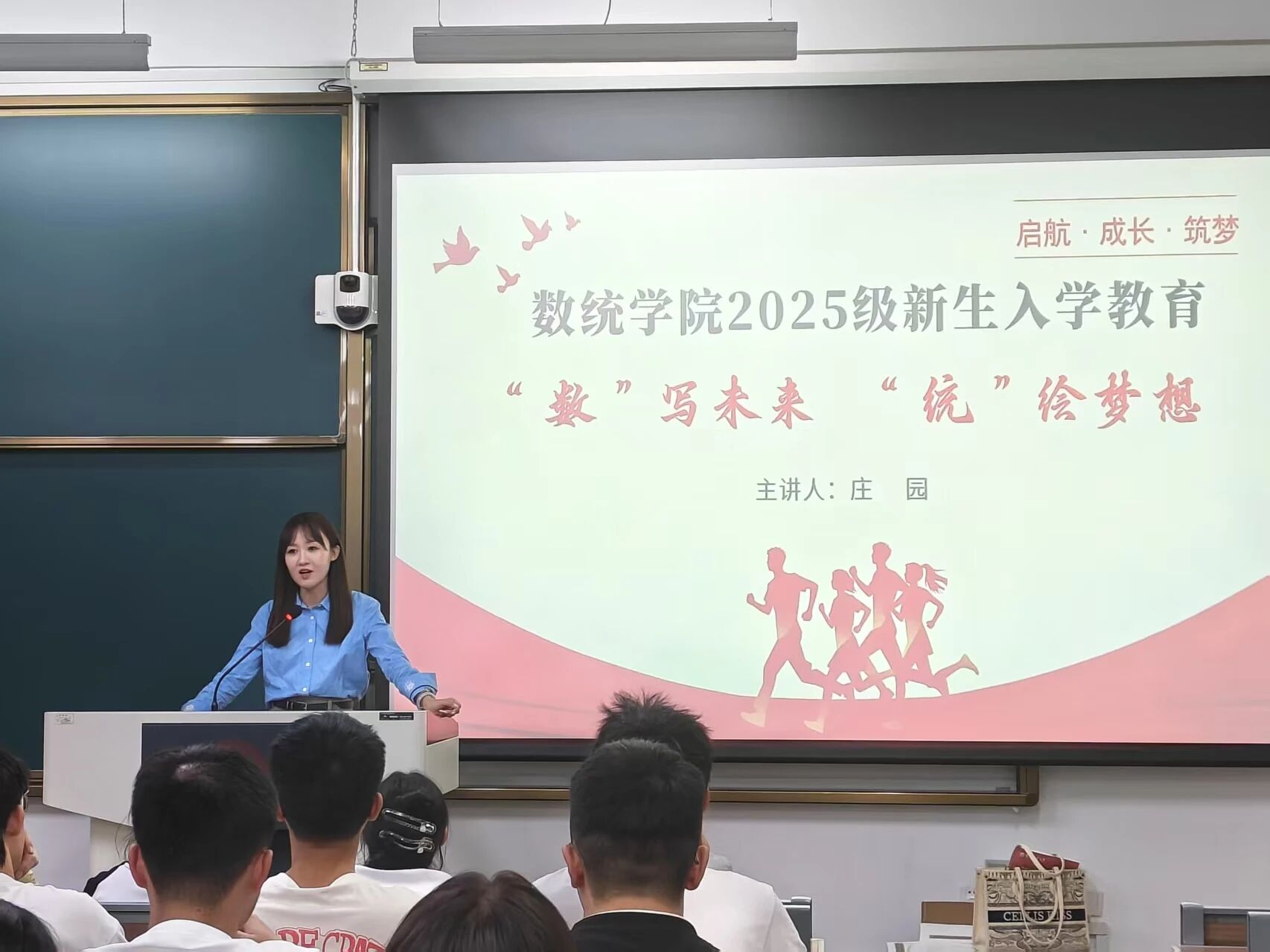 欧冠官方网站团委讯(通讯员:赵子茉 李佳程)为了帮助2025级新生尽快适应大学生活、明确学业规划,欧冠官方网站于9月8日晚在主楼232和240教室开展以“‘数’写未来,‘统’绘梦想”为主题的新生入学教育课。本次课程由学院团委书记、2025级本科辅导员庄园老师主讲,2025级全体新生参加。