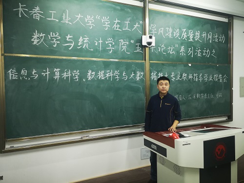 欧冠官方网站团委讯(通讯员:李龙章徐尧)全面落实我院“学在工大”学风建设质量提升月活动的推进工作,为学生举办具有实效性的特色“师长论坛”的专业教师指导学业报告会,让同学们更好地了解自己的专业发展趋势以及专业的就业情况,欧冠官方网站于2019年12月4日在北湖东区教学主楼446教室和452教室,分别举办了两场专业教师指导学业报告会,报告会由应用数学系主任刘铭,统计系主任李纯净主讲,2017届,2018届和2019届全体学生参加本次报告会。
