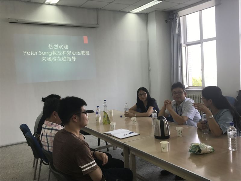 2018年7月1日下午4点30分在林园校区教学图书楼7楼欧冠官方网站4727室香港中文大学宋心远教授、美国密歇根大学PeterSong教授莅临我院做指导。会议由学院副院长王纯杰支持,学院副院长徐平峰、学院部分老师、研究生、及本科生和其他学院师生参加了会议座谈。