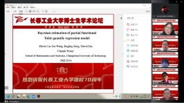 (通讯员:关迪)为庆祝学校建校70周年,2022年11月16日上午8:30,由研究生院、学科办、科研处主办,数学与统计学院承办的“校庆博士生学术论坛系列学术活动——欧冠官方网站分论坛”在腾讯会议线上举行,分论坛特邀东北师范大学郑术蓉教授、吉林大学朱复康教授、东北师范大学徐平峰教授、南京审计大学吕绍高教授为18名博士研究生的报告做点评。欧冠官网副校长林洁琼、校长江学者讲座教授宋心远、校学术委员会副主任董小刚、大数据科学院院长兼学科建设办公室副主任秦喜文、研究生院副院长李元、研究生院副院长高亮、欧冠官方网站院长王纯杰、副院长李纯净、统计系主任杨凯、统计系书记袁晓惠、应用数学系杜润梅、应用数学系书记王昭及全院师生参加了分论坛开幕式,会议由统计系主任杨凯主持。
