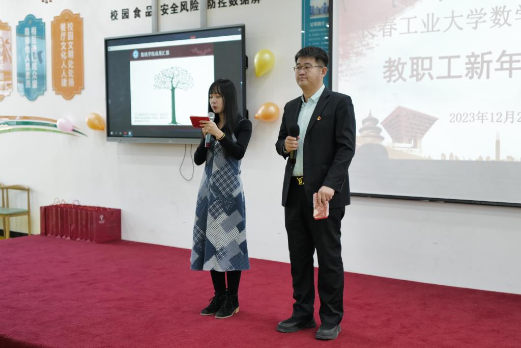 联欢会在学院过去五年成就展示短片中拉开帷幕,党委书记王丹、院长王纯杰先后发表新年贺词,他们向全体教职员工致以新年的问候,对大家一年来的辛苦付出表示衷心的感谢,对学院过去一年中在党建、学科建设、人才培养、科学研究、等方面发展取得的辉煌成绩表示祝贺,并纷纷献上新年的祝福。学院教工按照教研室为单位表演了精彩的文艺节目,有诗朗诵、有合唱、有情景剧,一时间掌声与欢笑生不绝于耳,游戏娱乐环节给联欢会增添了许多轻松和愉悦。