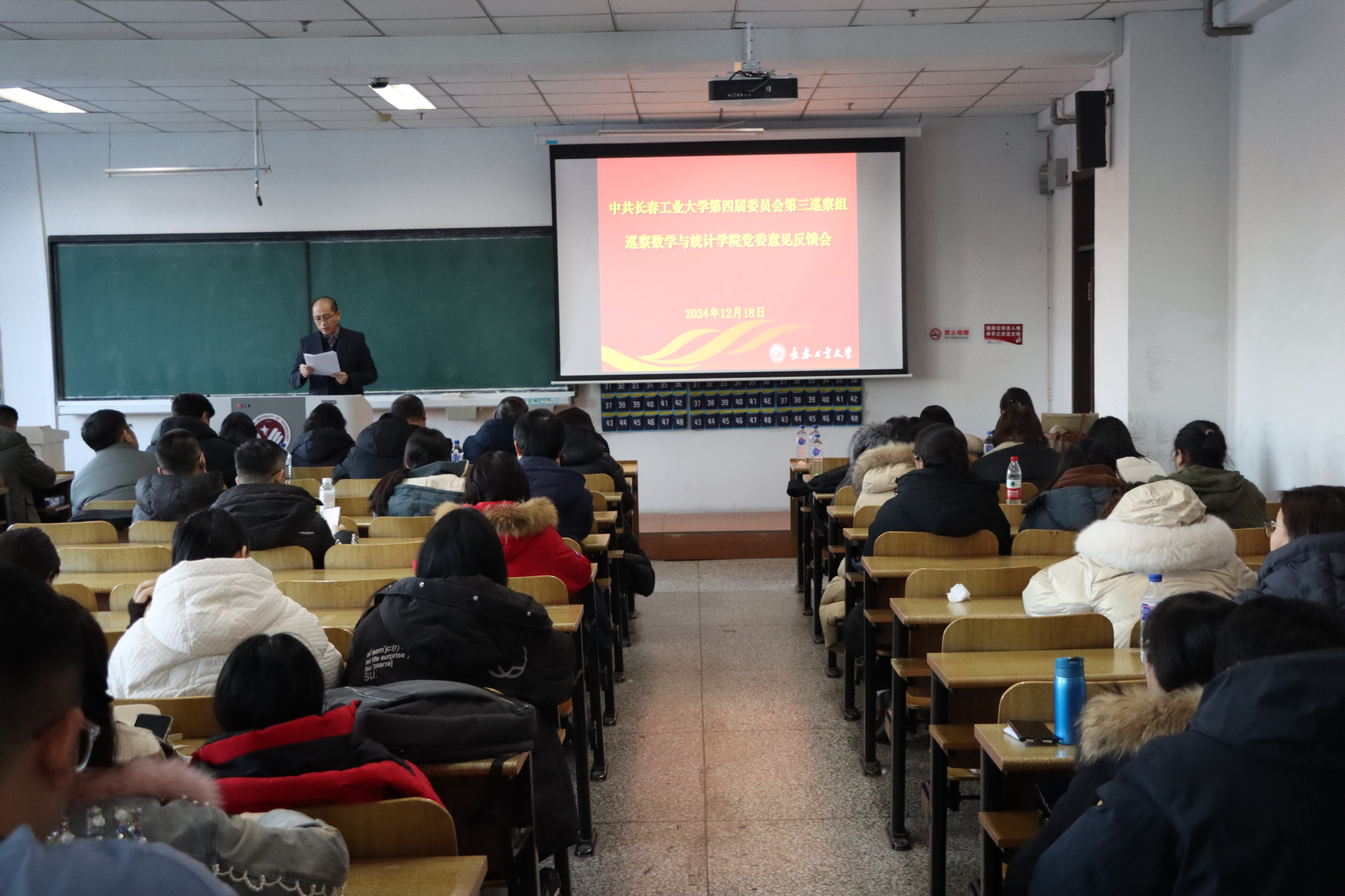 根据学校巡察工作领导小组的部署安排,2024年12月18日,党委第三巡察组向欧冠官方网站党委反馈巡察情况。学校党委第三巡察组组长李海峰传达了学校党委书记、巡察工作领导小组组长孙长智同志在党委常委会听取巡察情况汇报后的讲话精神,并对抓好巡察整改工作提出要求。党委第三巡察组副组长薛勇向欧冠官方网站党委领导班子反馈了巡察情况。学院党委书记王丹就做好巡察整改工作讲话。