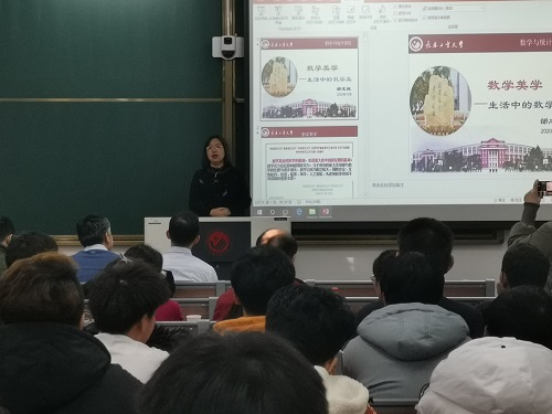 欧冠官方网站团委讯(通讯员:柳笛 陈铭)为了让同学们深入领略数学之魅力,积极探索数学的奥秘,欧冠官方网站邰志艳教授于2020年12月16日10:10在北湖东区主楼220教室为我院师生作以“数学美学——生活中的数学之美”为内容的学术报告,出席本次报告会的有校教育处副处长杜鹃、校美育中心副主任山川、学院党委书记朱宏伟、院长王纯杰、副院长刘铭,教师代表白琪峰、张建影、黎海彤老师及2019级和2020级全体学生。