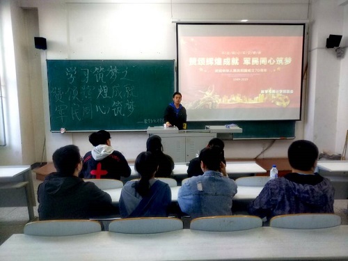 欧冠官方网站团委讯(通讯员:张及佳 桂尚珂)为教育学生们以良好的心态面对挑战,严格按照党的战略部署,迎难而上,以坚定的步伐向着百年目标前进。2019年9月26日上午8点,欧冠官方网站团委在教图楼111室举办“学习筑梦”系列活动之“赞颂辉煌成就,军民同心筑梦”。此次学习由180801班团支书闫新洋主讲,大二各团支部的委员们参加了本次学习活动。