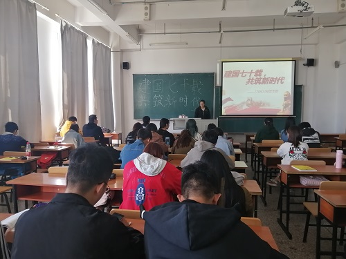 欧冠官方网站团委讯(通讯员:张及佳 桂尚珂)为纪念祖国建国七十周年,帮助学生们积蓄精神力量,树立大国理想,欧冠官方网站各团支部开展“学习筑梦”系列活动之“建国七十载,共筑新时代”。活动于2019年9月20日在教图楼举行,19级、18级、17级全体团员参加本次活动。